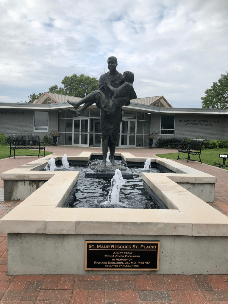 After St. Benedict fled Rome and settled in Subiaco, many nobles started to bring their sons to him to be educated. Among these first disciples were Maur and Placid who were young men, learning at the feet of the master. One day Benedict had a vision that young Placid fell into the lake as he fetched water. The strong waters of the lake swept Placid out. Immediately, Benedict asked Maur to go save his fellow disciple. Maur obeyed his master without hesitation and took off to rescue Placid at once. Without realizing it, Maur walked on water to bring Placid back on shore. Once safe on the land, Maur attributed this miracle to Benedict’s command and in return Benedict gave the credit to Maur’s obedience. To settle the matter, Placid recounted that he saw the abbot’s goatskin over his head as he was being pulled out of the water.
