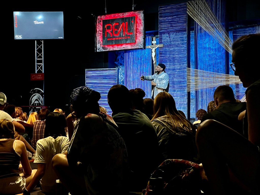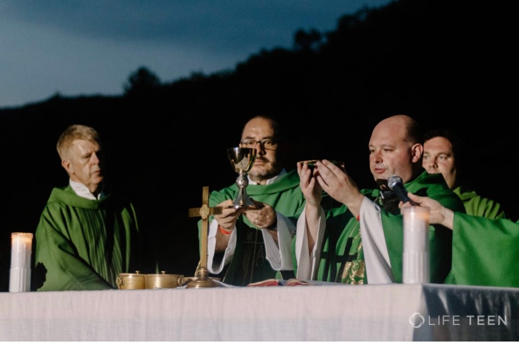 The journey began with clean clothes and smiling faces.No one knew of the obstacles they would have to overcome.Would they have to cross muddy moats that housed alligators?Would they have to be fired from catapults?Would there be murky swamps with rodents of unusual size?Would they have to walk on water like St. Maur?Would they have to defeat the invincible blue-horned dragon? No matter what hurdles their path laid before them, they could conquer them together.Because they were never alone.Even if they would end up muddy, tired and occasionally scratched.But most of all, in this little journey at Hidden Lake, they would learn about their Real Destinationthat is the one Person who would never leave them or forsake them,because they knew that St. Padre Pio was right when he said: “A thousand years of enjoying human glory is not worth even an hour spent sweetly communing with Jesus in the Blessed Sacrament.”This is but a glimpse of the adventure Maur Hill-Mount Academy students experienced at Hidden Lake, GA. While they learned how to work as a team and how to be a servant leader with countless fun activities, their main focus was the Eucharist. Through speakers, Scripture studies, sacraments and prayer, they came closer to their ultimate destination, the Real Presence of Christ in the Eucharist.