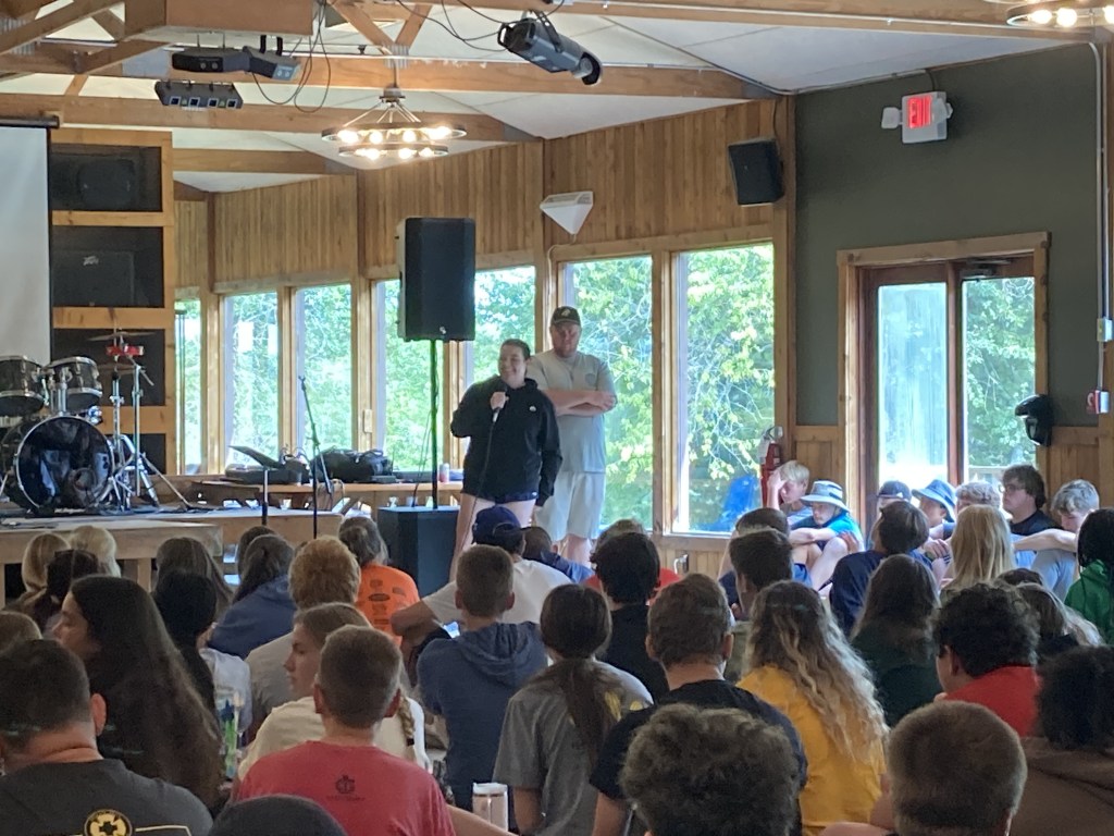 Guest speaker Lee McMahon led the retreat with a powerful discussion on the Holy Eucharist and being in Christ’s presence. Lee was a great candidate for our retreat as he is host of the New Mana podcast, a leader for the national Eucharistic Revival and has experience with St. Paul’s Outreach (SPO) and other Catholic organizations. In addition to the talks, students experienced the deep love of our Lord through Adoration, Mass, and the beauty of the wilderness surrounding them. Students were also gifted the book by Bishop Robert Barron, This is My Body.