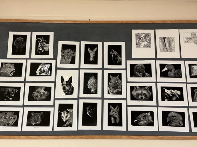 Do you remember our teachers testing out the new art teacher a while ago in the summer? We think she is doing a pretty good job after all. Well, at least, she is doing a pretty good job at putting all the amazing stuff our students create on the board. Well done, Mrs. Wallace!